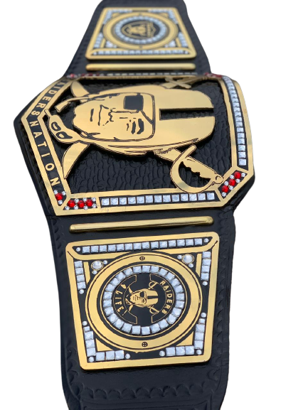 Raiders Nation Championship Belt, Customized Name- Gold - Silver